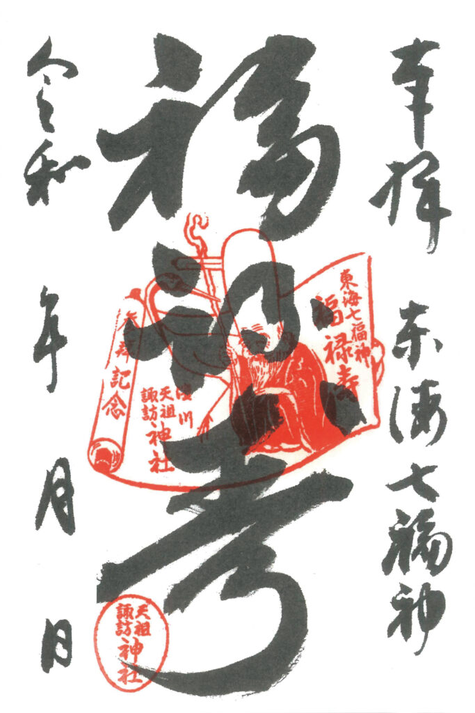 天祖諏訪神社では、令和8年東海七福神を記念いたしまして、「福禄寿さま特別御朱印」を期間限定にて頒布いたします。参拝証として授与しておりますので、御朱印をお受けになる際は必ずお参りをしましょう。