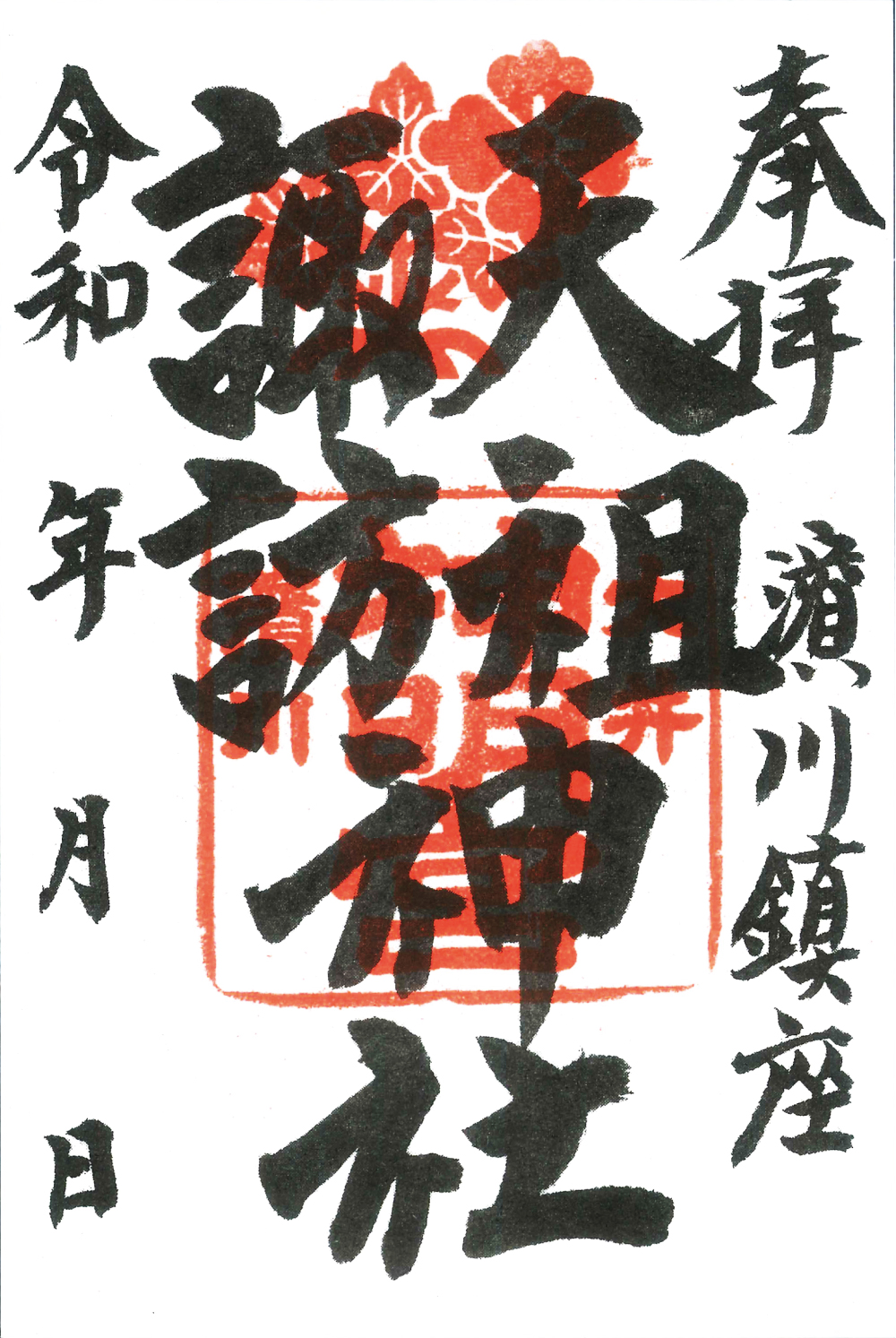 - 「天祖・諏訪神社御朱印」初穂料 500円(上記期間は、書き置きでの頒布となります)